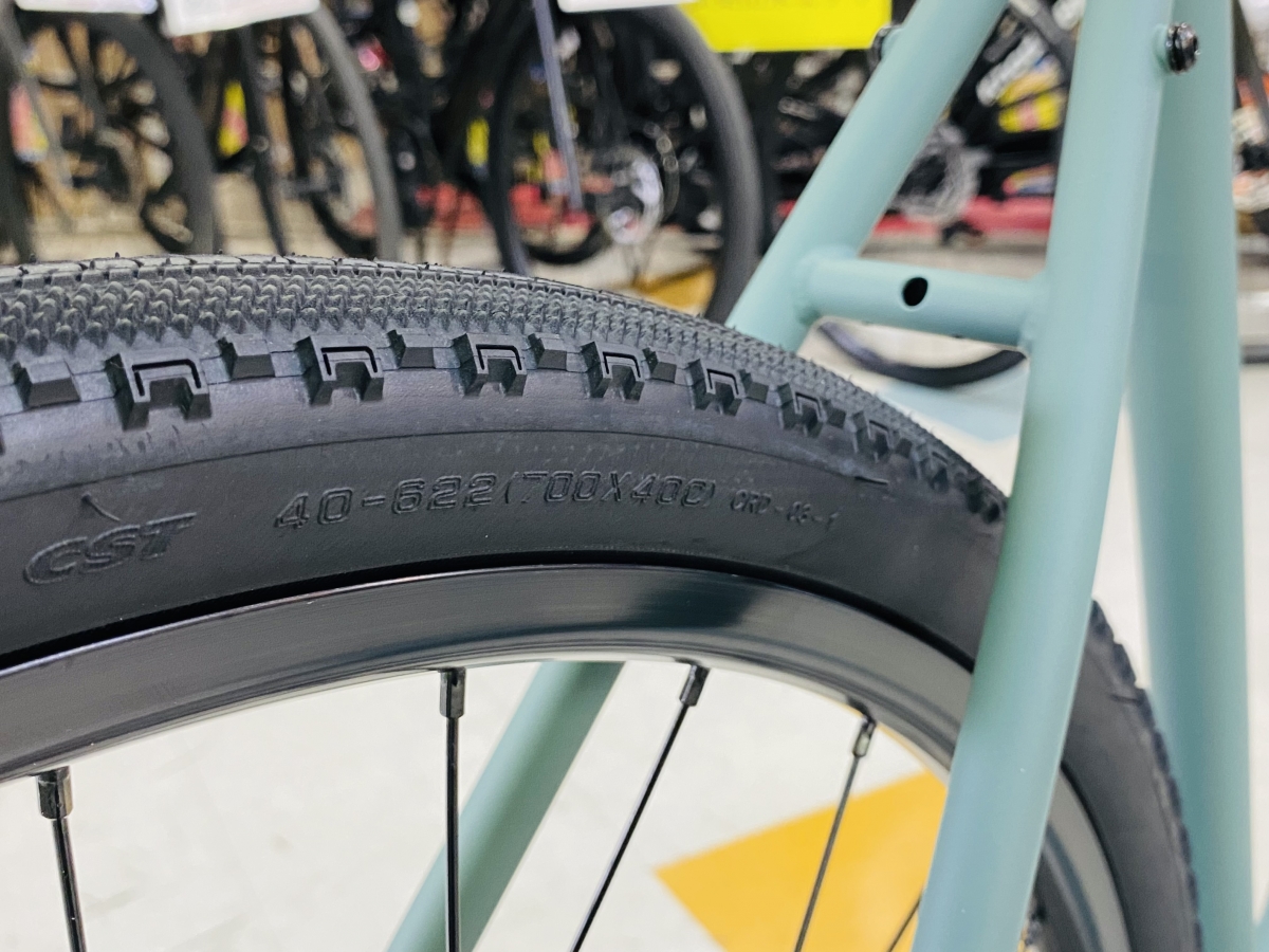 グラベルバイク並みのボリュームのあるタイヤでオフロードも走れるというわけ。