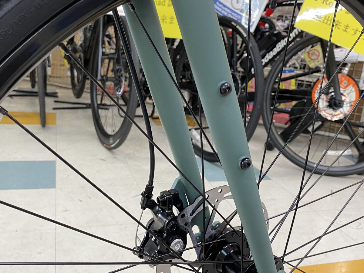 一番の特徴はディスクブレーキの利点を活かして太めのタイヤが入ってしまうところ。元々700×38cが標準装備だけど、なんと最大タイヤ幅45cまでOK!!
