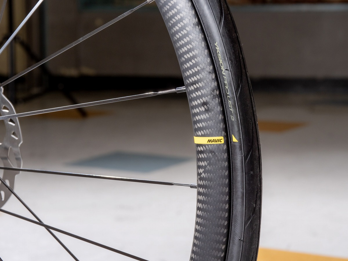 リムハイトが高いモデルよりも少し低めのものでバランスを重視しMAVIC COSMIC SL32をチョイス!お渡し前にシーラントを充填してチューブレス仕様としてお渡しするので、走り心地・乗り心地も◎