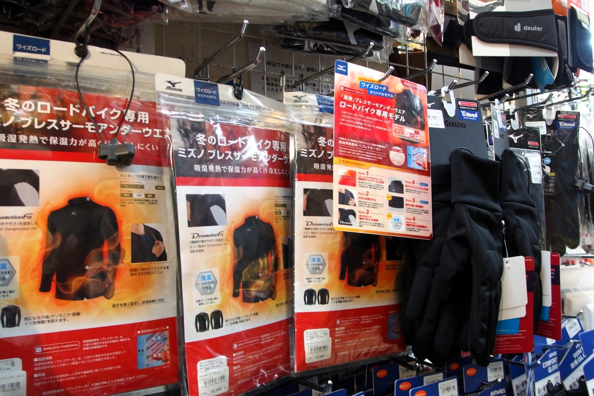 ご紹介しましたグローブの他、冬のライドを快適に楽しめるウィンターアイテム「ブレスサーモ関連アイテム」を池袋チャーリー店では扱っております。