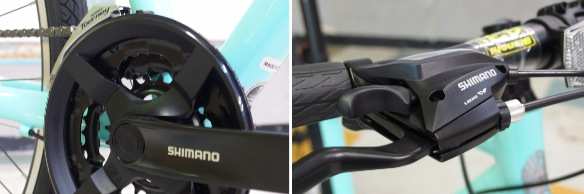 段差や道路のつなぎ目、側孔のちょっとした隙間なども安心してクリアできるチョイ太タイヤやズボン裾ガード、オールSHIMANOで統一された変速周りなど、乗る方・乗り方を考えられた丁度いい構成という事で、当店でも売れています。