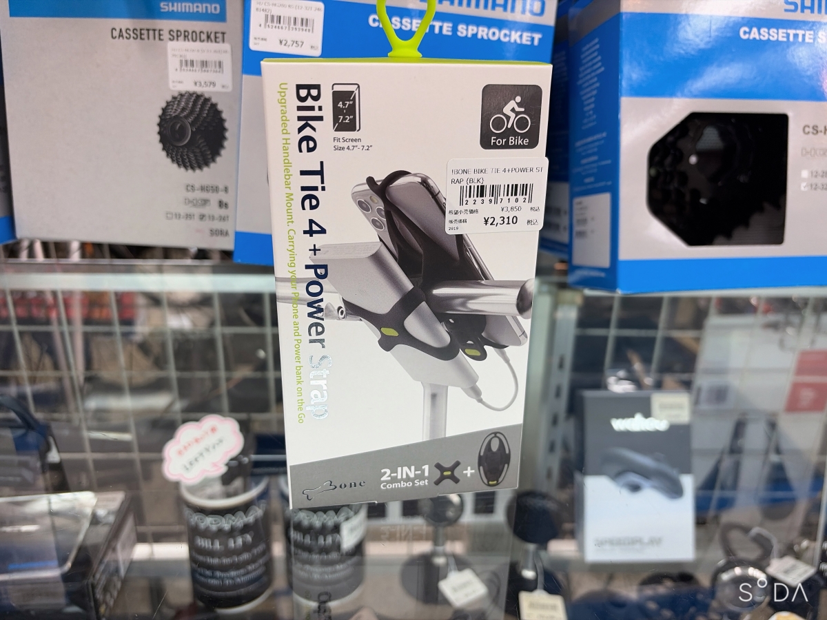 Power Strapが付属するので、モバイルバッテリーをセットしたら走行中もスマホの充電が可能です。