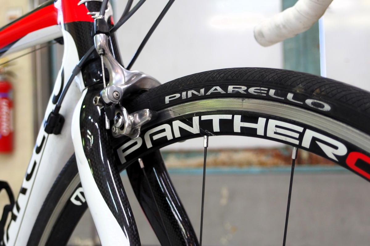 ピナレロロードの特徴的でもある曲線形状のフロントフォークとシートステーを持つ車体は、登場から10年以上経った今でも魅力的。未だ現役で乗られている方も多いのではないでしょうか?
