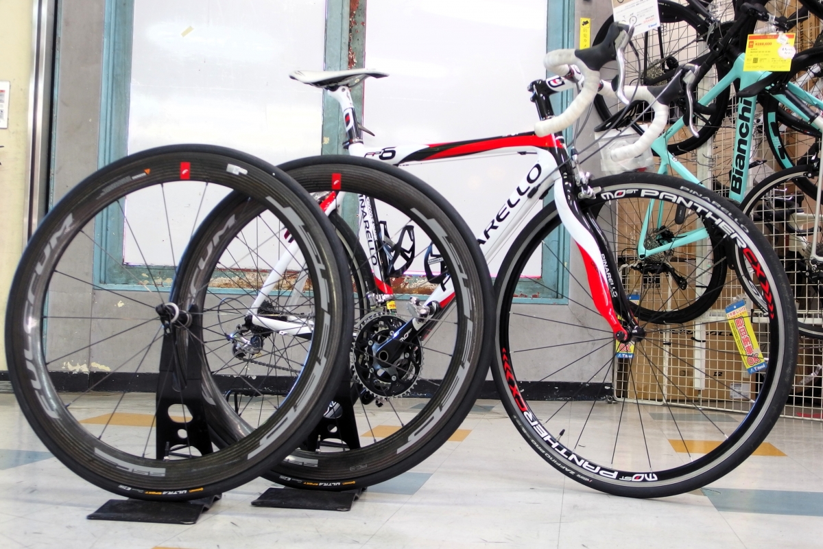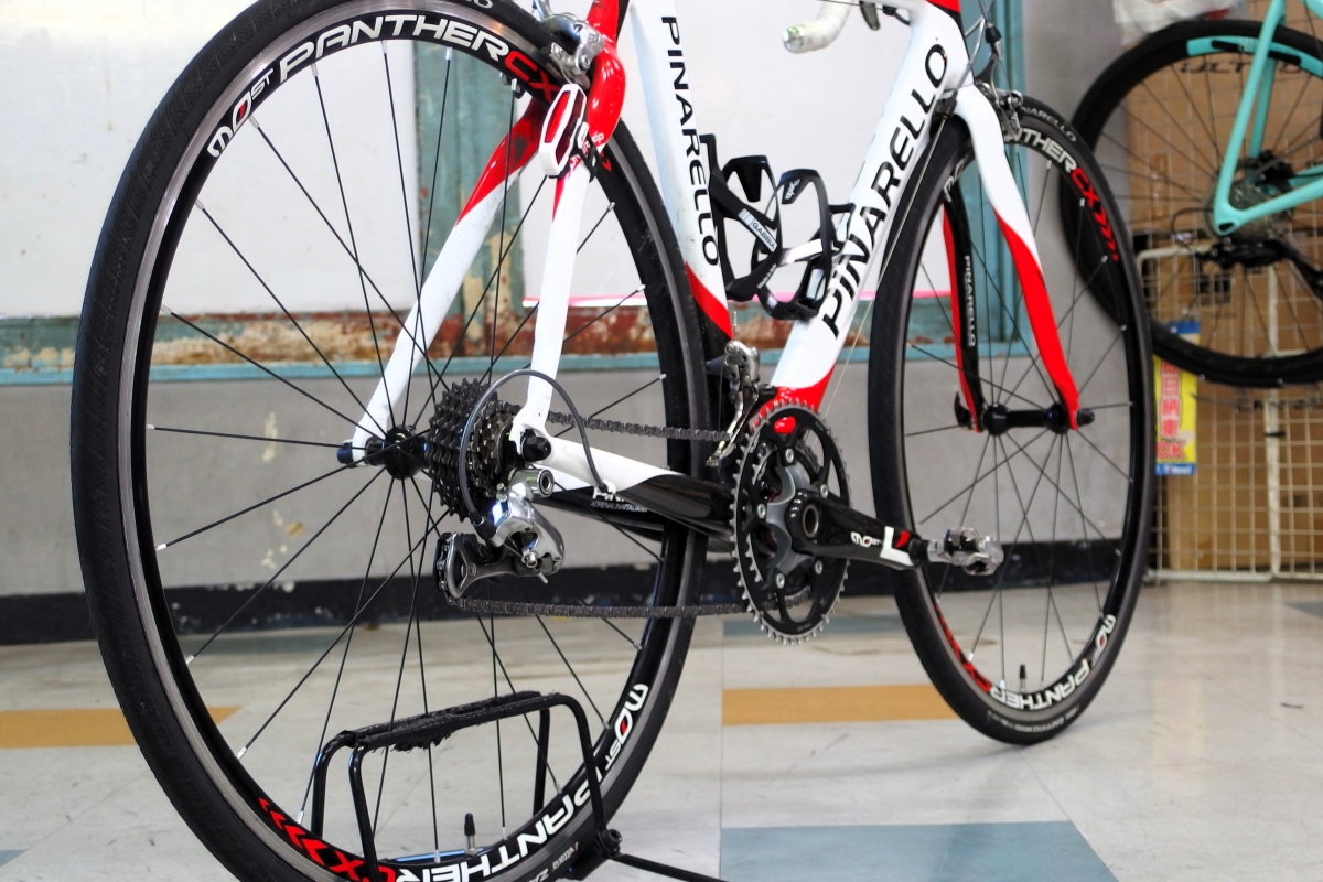 元のホイールはピナレロ・アクセサリブランド「MOST」のアルミ入門グレード。完成車標準モデルといてPINARELLOロゴのタイヤなど統一感もバチっと決まっていますが、やはりここはグレードアップさせたいところ。