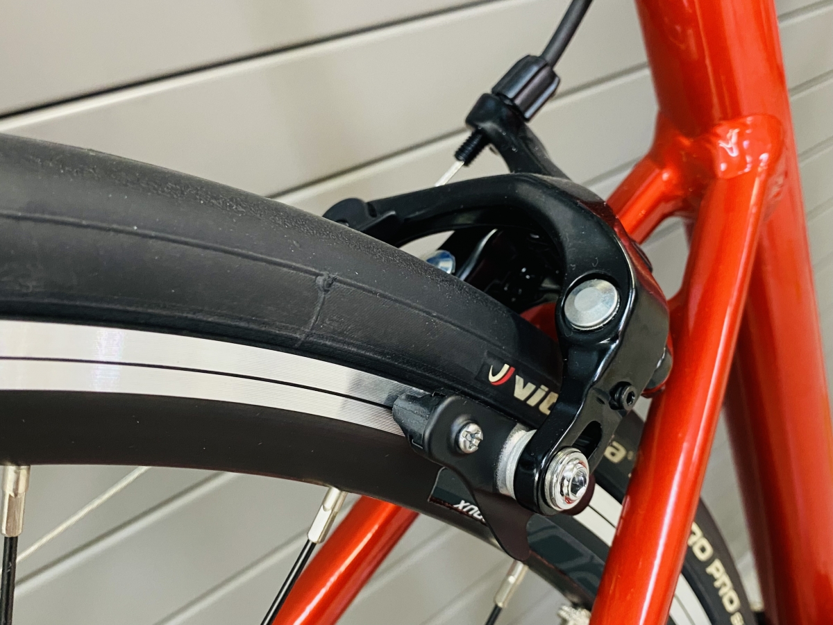 どのモデルも扱いやすいリムブレーキ仕様、昨今ディスクブレーキがトレンドだけどブレーキ面が乾いていればしっかり止まるし構造が見やすく故障した時の費用も安く済む点はメリットのひとつ