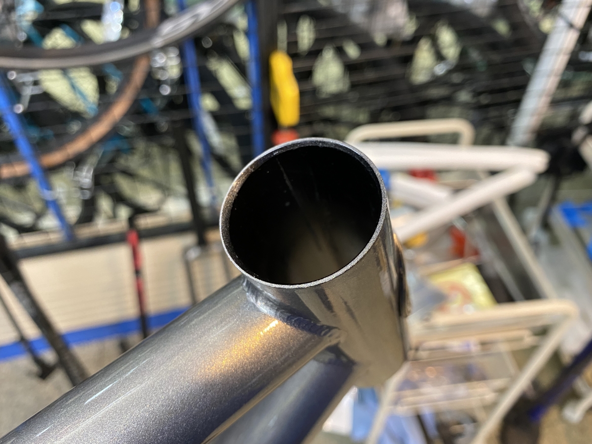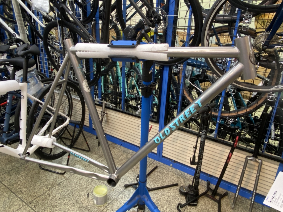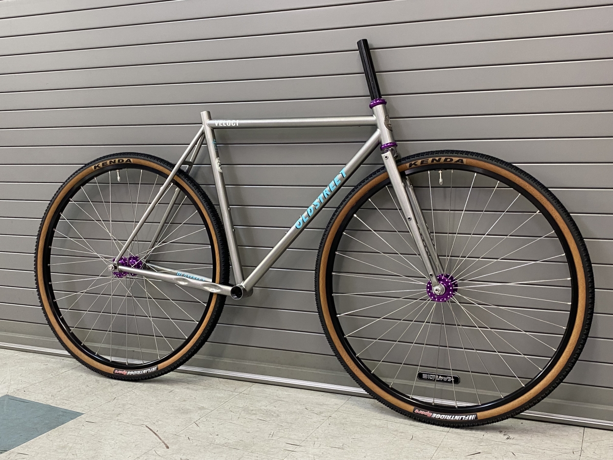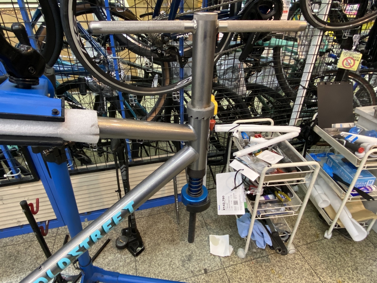 700×35cの太めタイヤが入るシングルスピード!完成車にするべく組み立て中でございます。