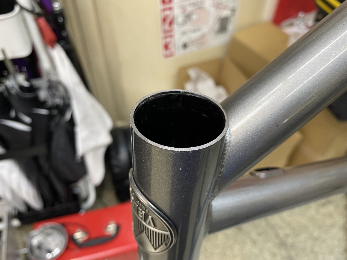 取り付け前にヘッドチューブの面が出ていないのでこちらの工具で整えて