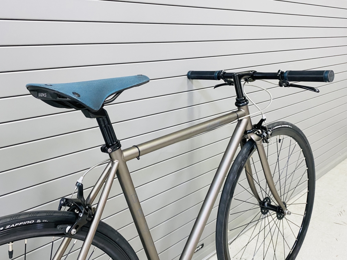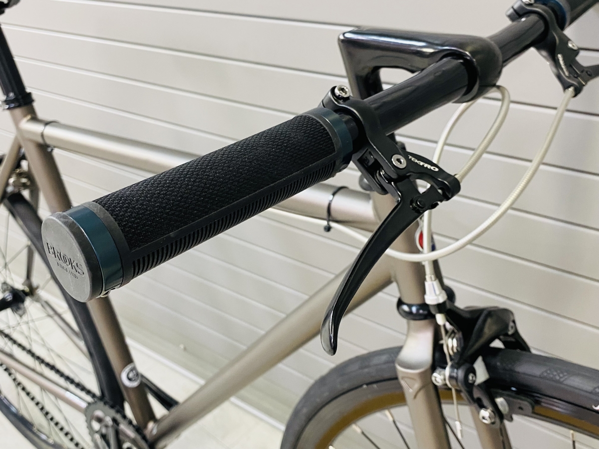 グリップはBROOKS 「CAMBIUMラバーグリップ」BLK/OCTANEカラー。ブレーキはテクトロ史上一番シュッとしている「FL750」。細かいところでブレーキケーブルは日泉のクリアカラーに変更。個人的にも使いやすい好きな色味。車体が引き立ちますね。