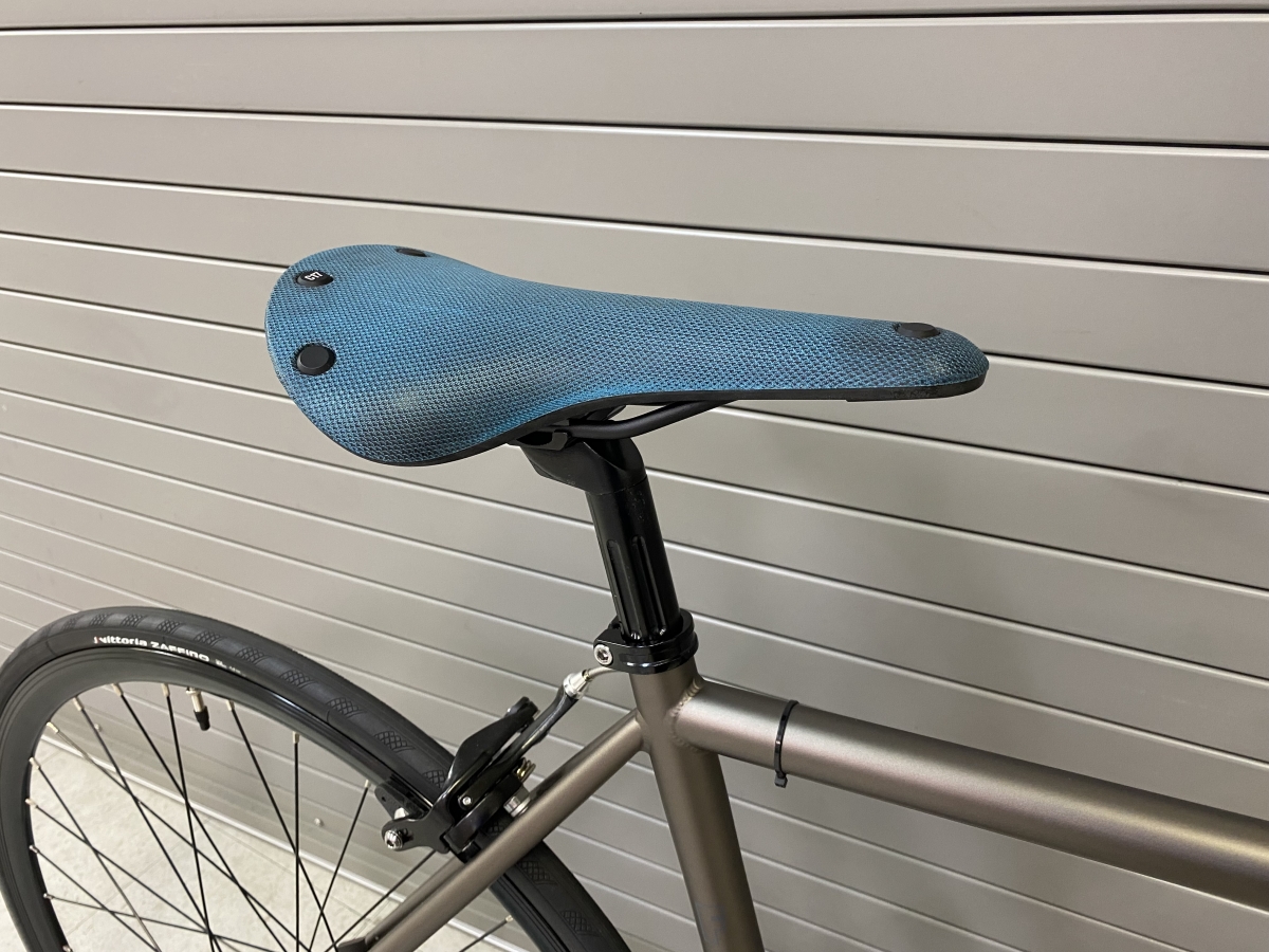 サドルはBROOKS「CAMBIUM C17」本来は革で有名なBROOKSだけど、そこはあえて差し色に綺麗なOCTANEカラーを選択してグリップとリンク。キャンバス地で汚れに強い全天候対応型サドル。