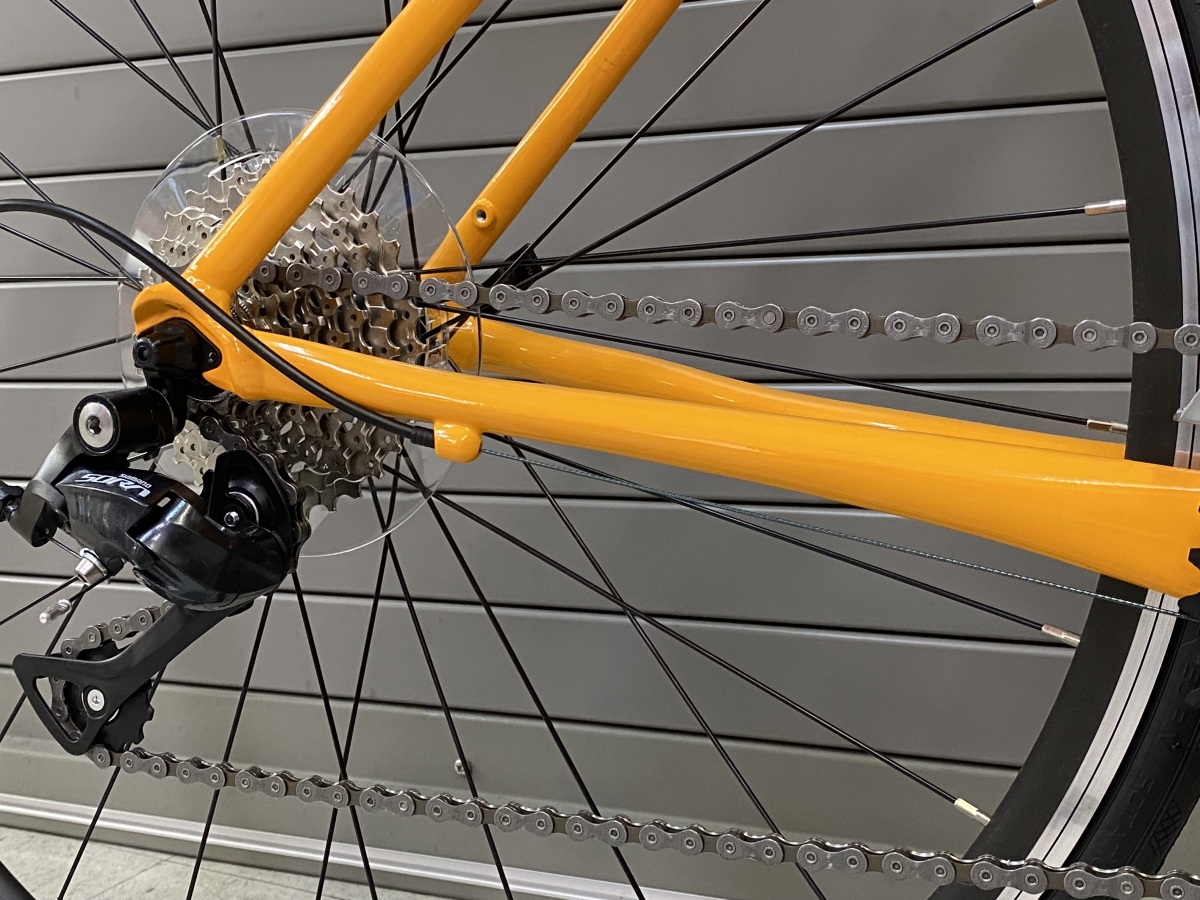 チェーンステーを扁平加工することで振動を吸収。アルミ特有の硬さを和らげ、ロングライドでも快適に走れます。