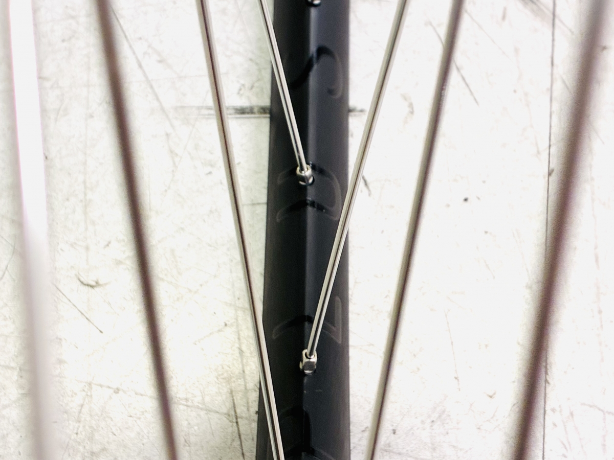 最大の特徴はやはり中心に向かって角張った鋭いデザイン。ロゴも落ち着いていて控えめにいって間違いなしのリム。