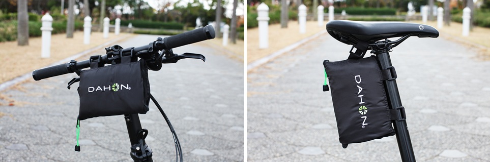 バッグ自体もコンパクトなので収納時にハンドルやサドルへつけての持ち運びも可能なので煩わしさも最小限。