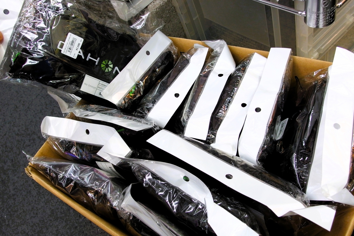 現在、上記バッグはXLサイズを除いてすべて在庫しており、SLIP BAG20に至っては車体よりも多いくらい!?