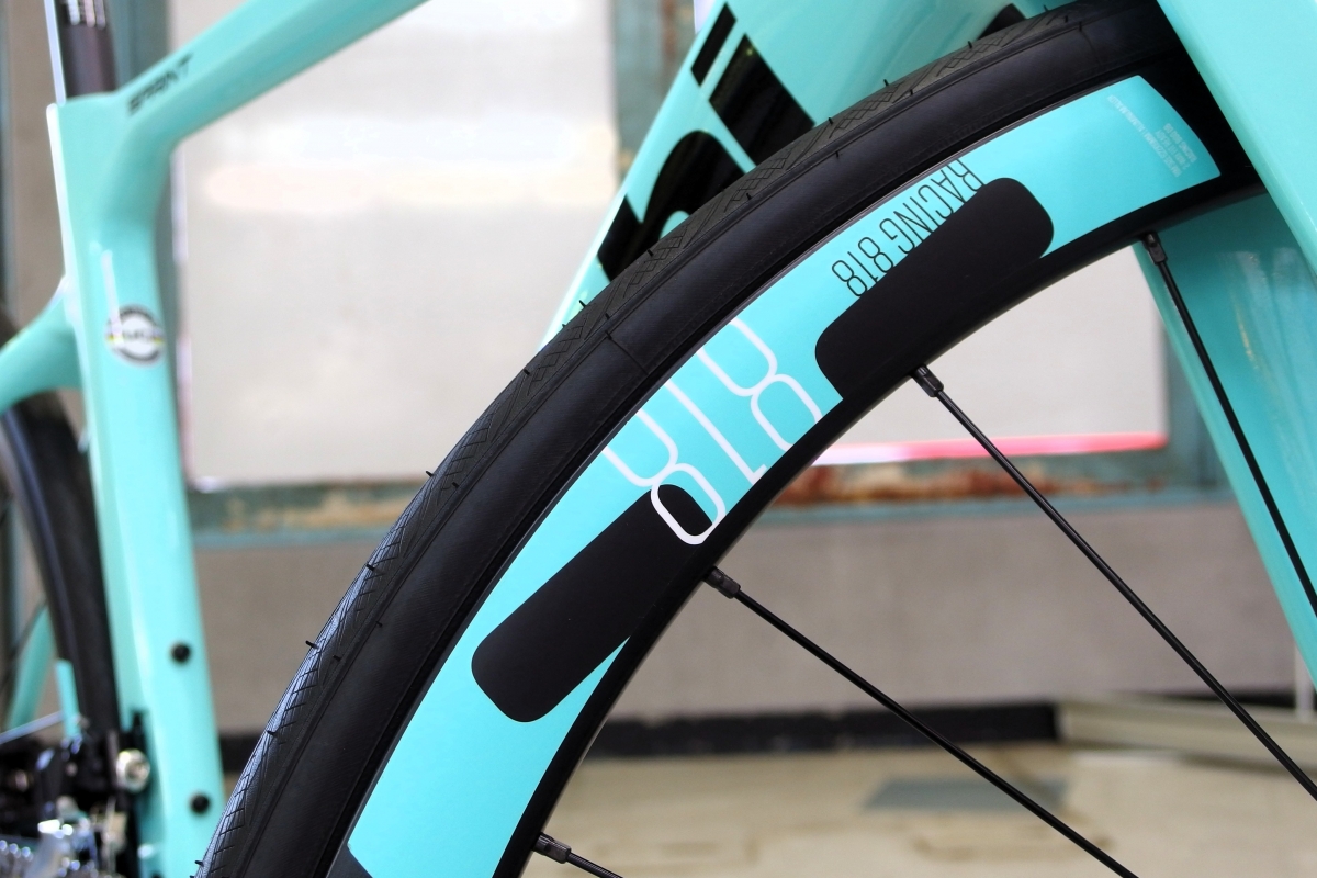 FULCRUM RACING 818という通常にはないラインナップのモデルでセミエアロなリムハイトがスプリントの走りを引き上げてくれています。