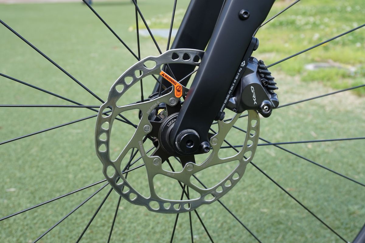ブレーキキャリパーも妥協なしのBR-RX820油圧ディスクブレーキ。ローター径はフロント160mm、リア140mmとなっており、これはDAVOSの推奨のサイズです。