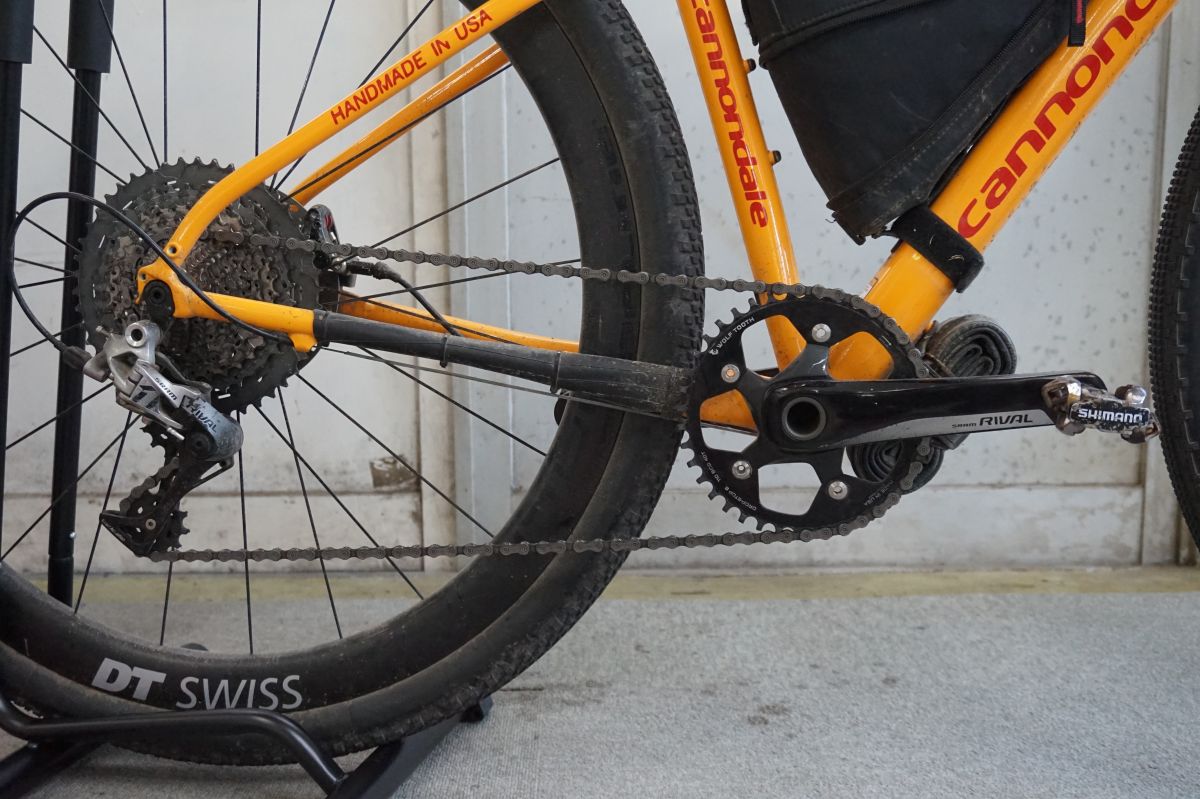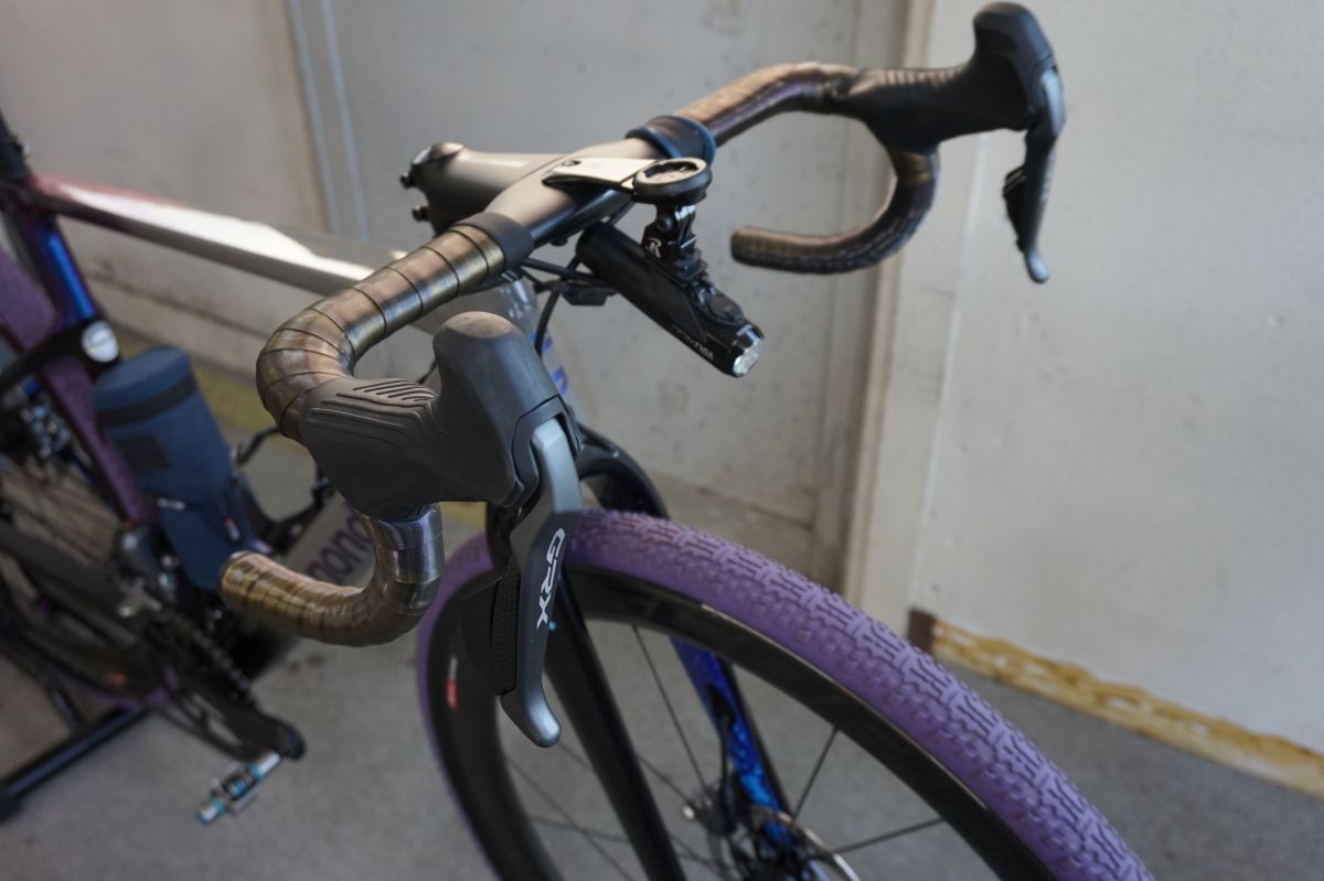 もともとはSRAM FORCE 1で組まれていたバイクですが、フロントダブル化したかったため、2×11速のシマノGRX Di2に組み替えています。