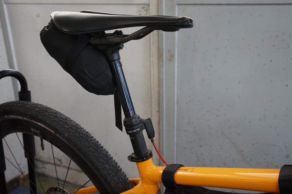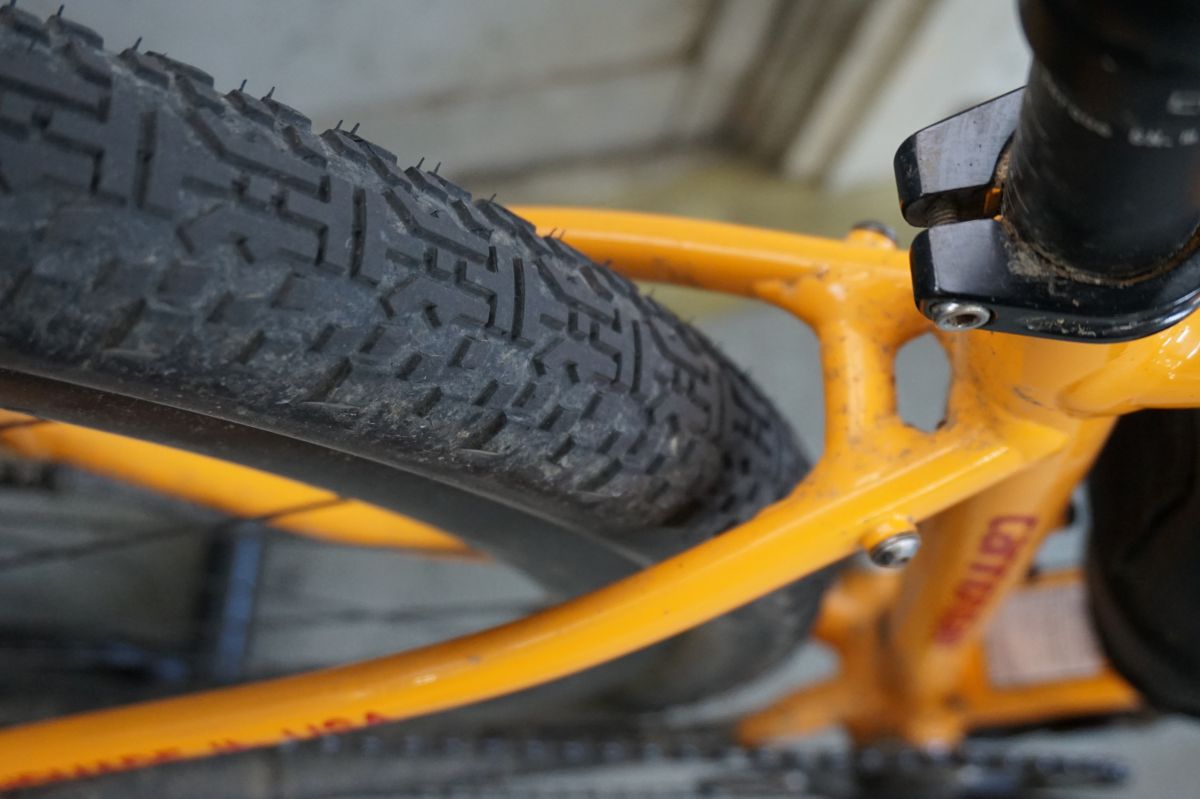 先日の休みに友人たちとグラベルライドしてきたので、泥も跳ねたままのワイルドな状態。タイヤが太いこともあって迫力あります。
