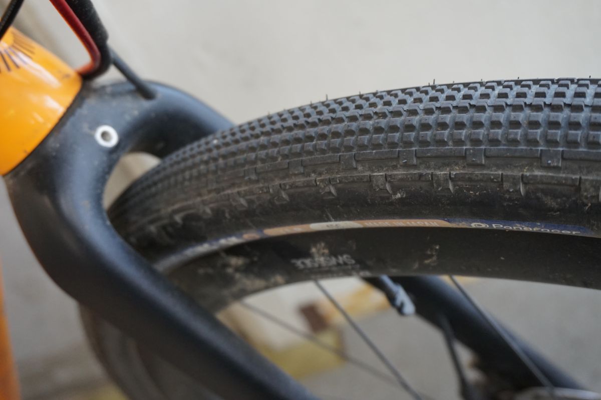 前後異なる組み合わせは、Gravel King X1が登場する前だと、前にSK、後ろにSSを付けるパターンはよく見られました。後ろにX1は舗装の転がりとグラベルでのグリップ確保という点で理想的です。