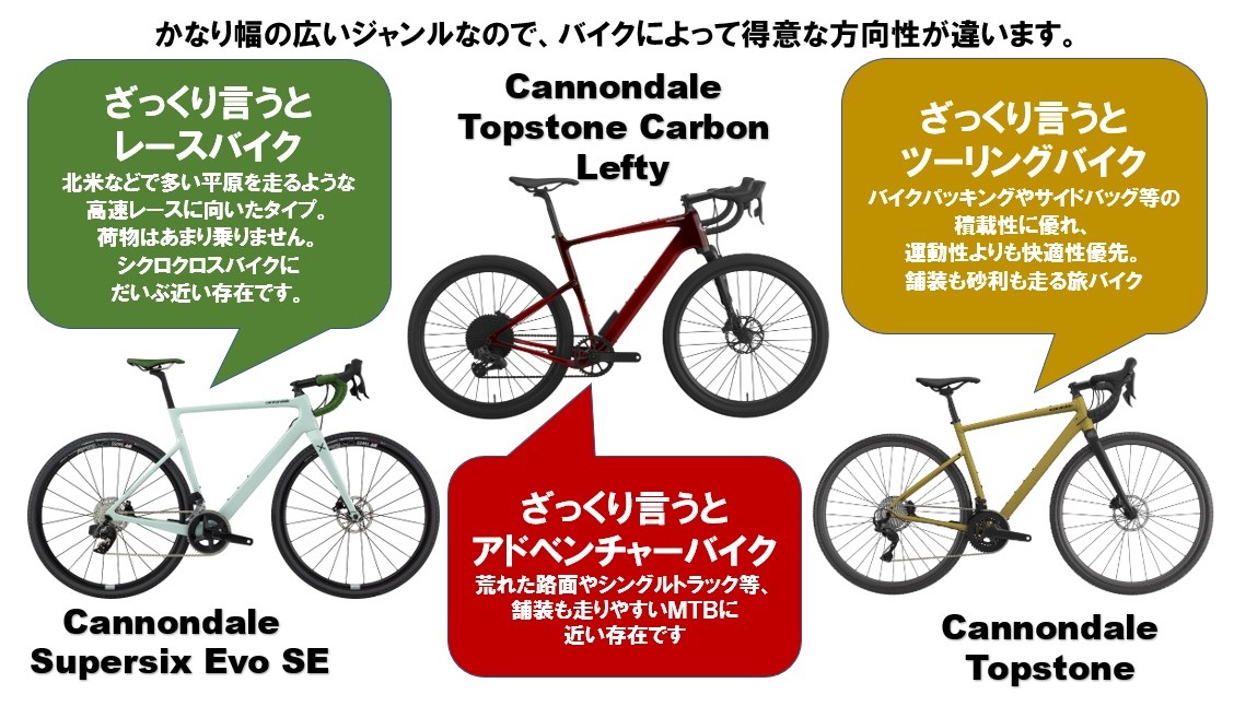 キャノンデールは現在3つのカテゴリーのグラベルバイクを製造販売しています。