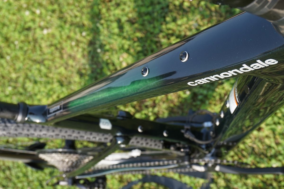 フロントフォークには、グラベルバイク専用に設計したキャノンデール独自の片持ちサスペンション『Lefty Oliver』を装備。ストローク量30mmは、現代のMTBを見ていると非常に微々たるものですが、小さな衝撃はスルーし、大きな衝撃はしっかりクッションを働かせてくれて、グラベルでのコントロール性を向上させてくれます。