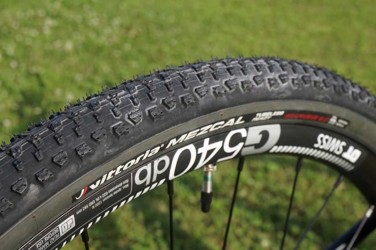 タイヤはVittoria MEZCAL 700×45Cを装備。販売状態ではチューブが入っていますが、チューブレスレディ化もできます。ちなみにメーカー公称クリアランス700cで45mmです。