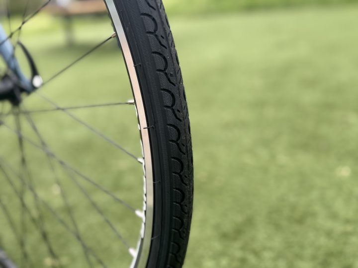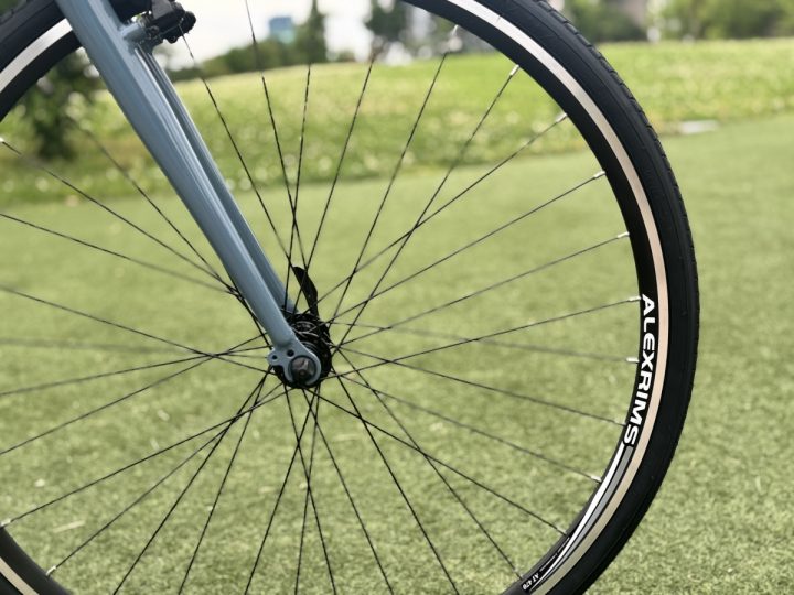 タイヤは太過ぎず、細過ぎず、700×28c! 街の中を軽快に走ります!
