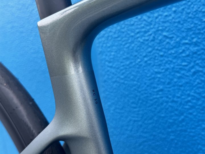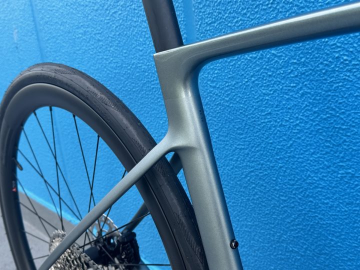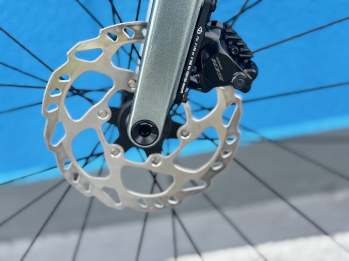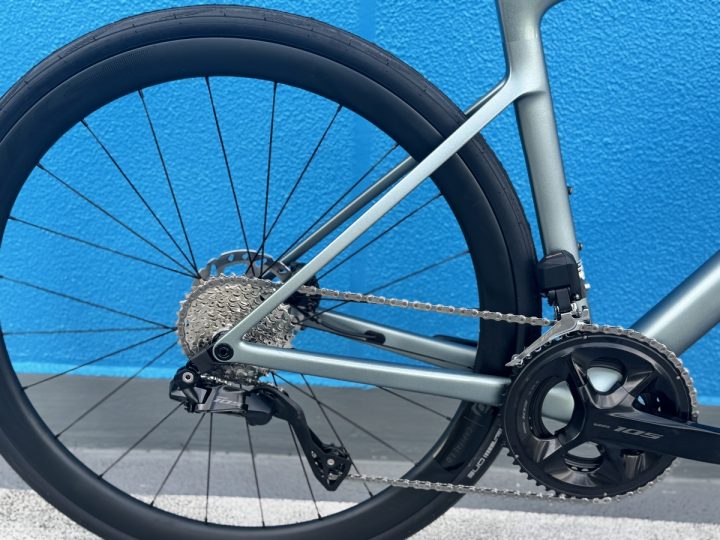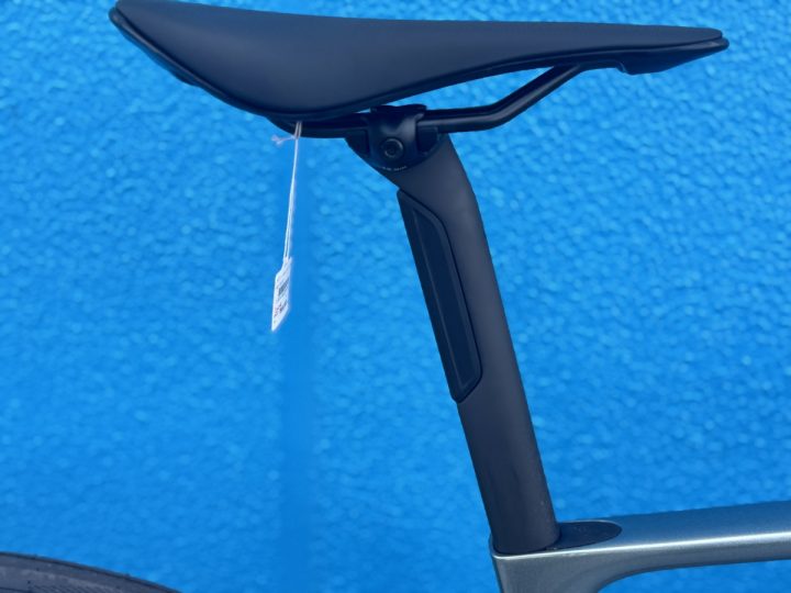 シンプルでカッコいいですね。問い合わせも多く、検討されている方が多いようなので頑張って試乗車を用意いたしました。105Di2で、7.7㎏て超軽い!