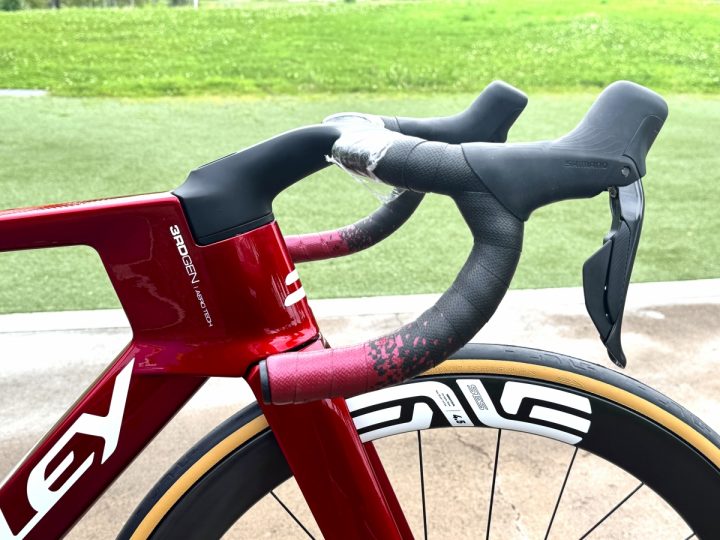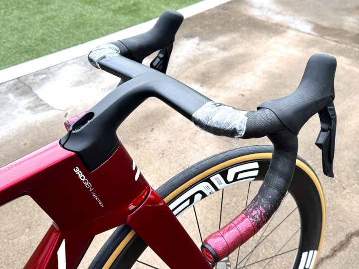 ハンドルは現在のトレンドと人間工学に基づき、自然な手首の位置を作り出すフレアハンドルを採用。シフターは自然に内側にセッティングでき、エアロポジションがさらに強化され全面投影面積を減らすのに役立ちます。