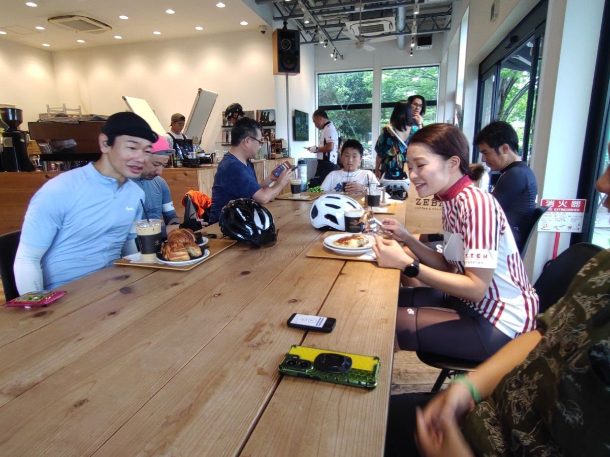 尾根幹の登り途中、稲城中央公園の『Zebra Coffee』さんへ。クロワッサンとコーヒーなどをいただきながら、普段どんなところを走るのか、とか、どういう道具を使ってるのかとか、話に花が咲きました。