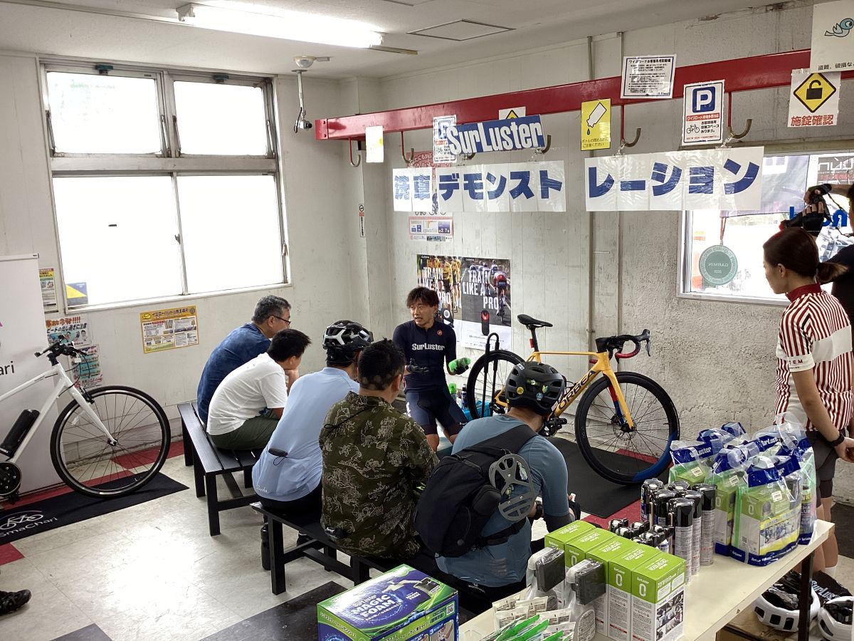 その後、ちょうど開店時刻の府中多摩川店に戻り、シュアラスターのアンバサダー半田選手による洗車講習会を受けていただきました。