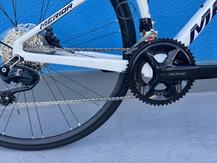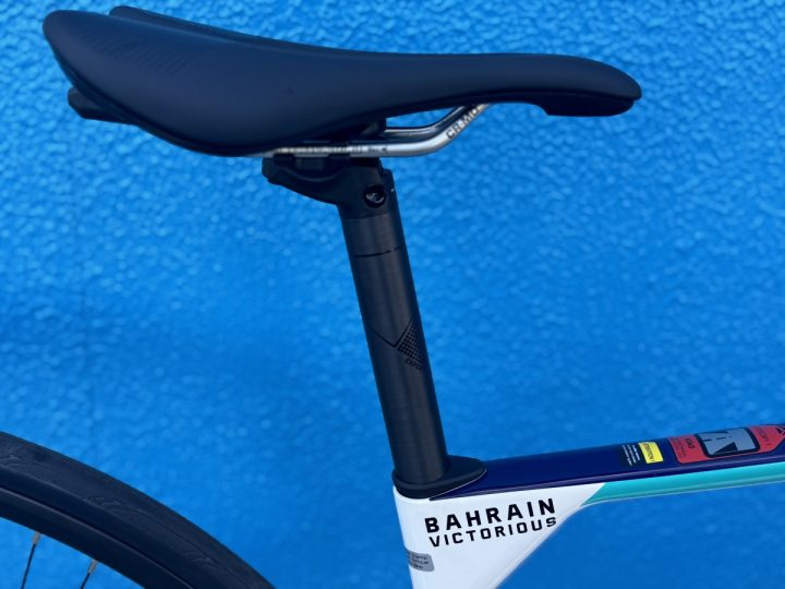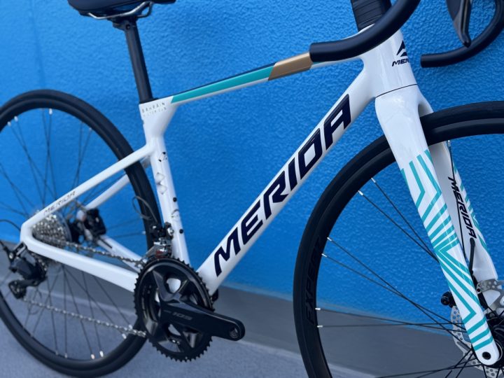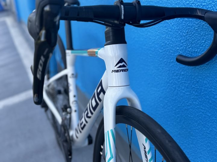 シートポストはメリダカーボン! 軽いわけです。車重量は8.6㎏(XSカタログ表記)。
