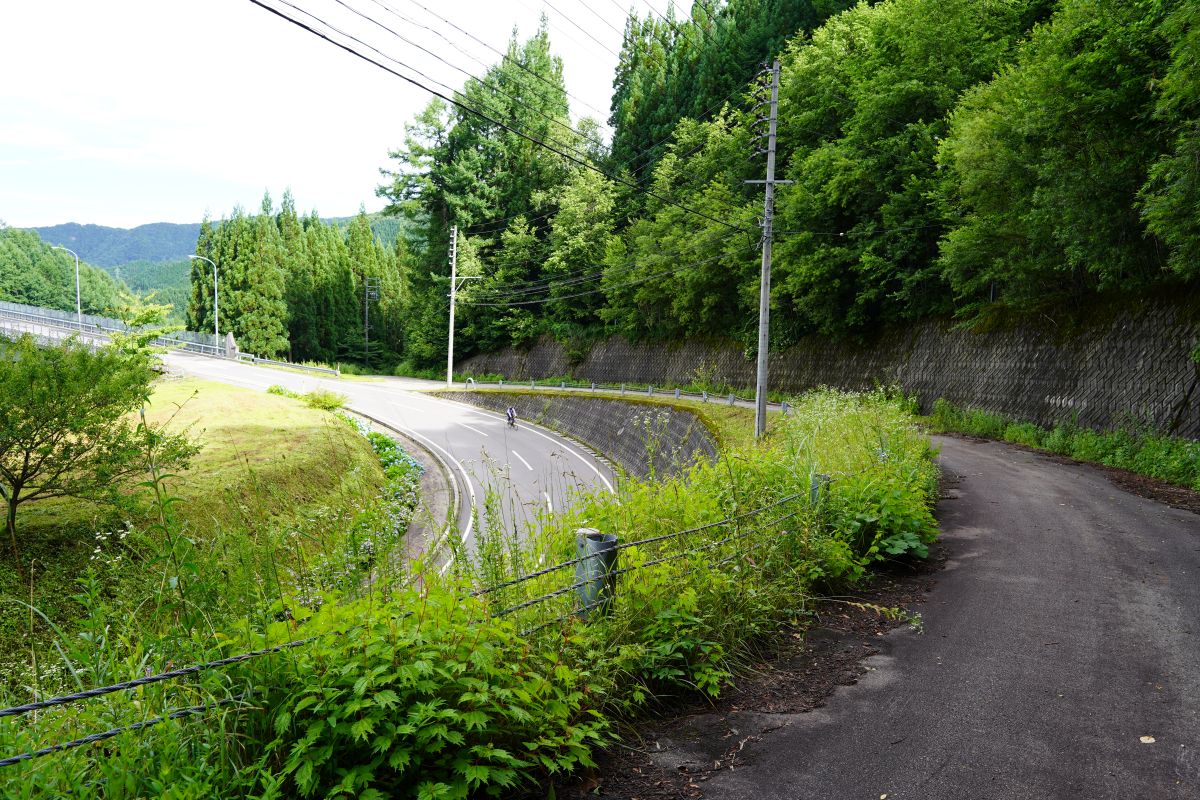 いや~、期待通りの荒れ道。両側から草木が迫ってくるし、路面はゴミが散っているだけでなく、場所によっては舗装が剥がれてガレている。グラベルライダーとしてはおいしすぎる。ただ、クマはいそうだなぁ、と思い、登りで荒い呼吸をわざと声に出して行きました。斜度きついけど楽しかった!(だが明らかにこれで体力消耗したよなw)