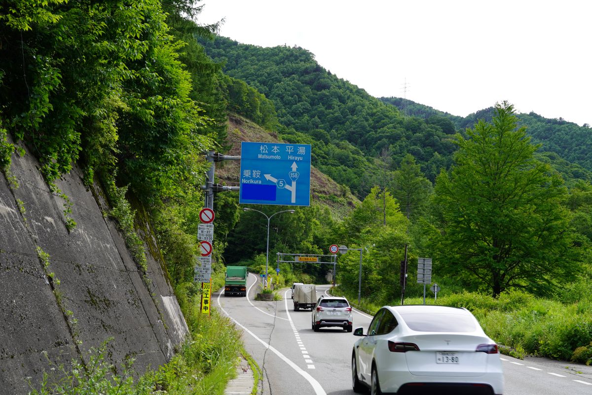 ほんのちょっと国道に戻ったのち、県道5号にてまずは平湯峠を目指します。現国道はこの先、平湯温泉までトンネルです。交通量はもう、こんな感じでどんどんクルマ来ます。