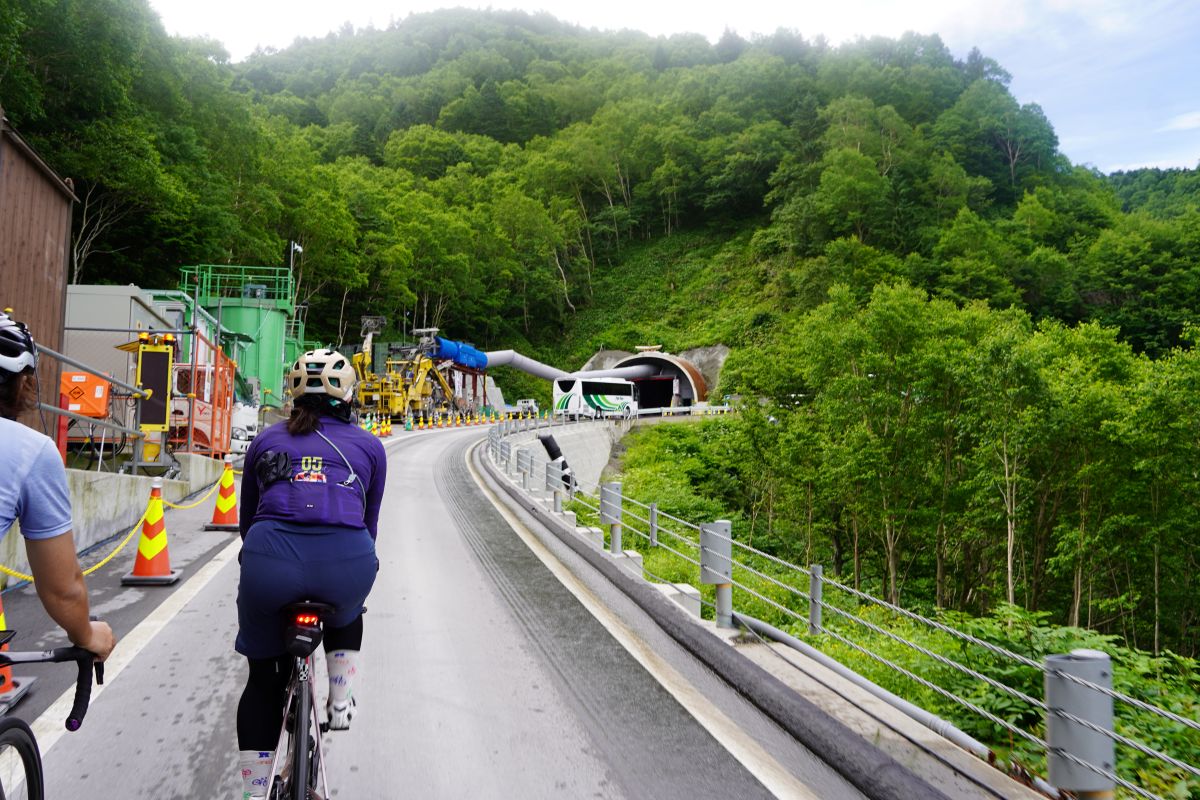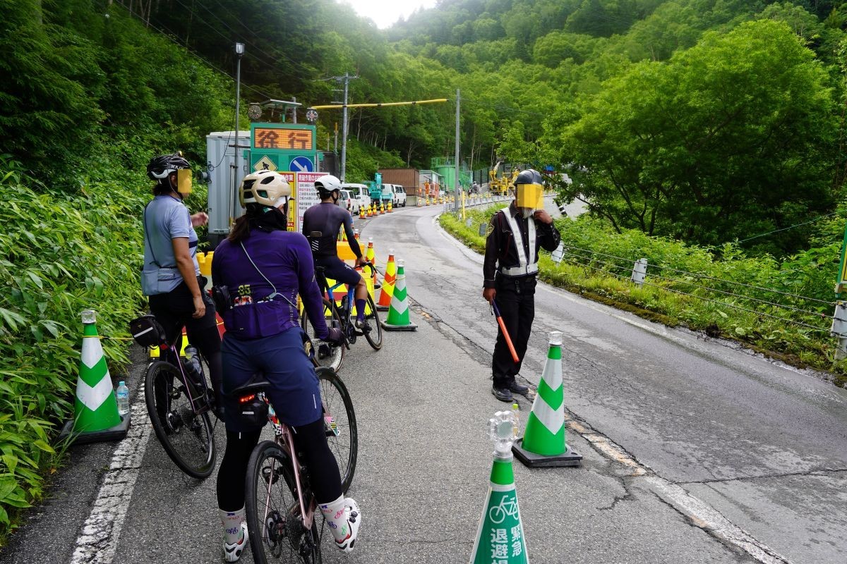 ゲートから600mほどで問題の工事区間。けっこう長い。先にバスなどを通してから自転車が誘導されます。
