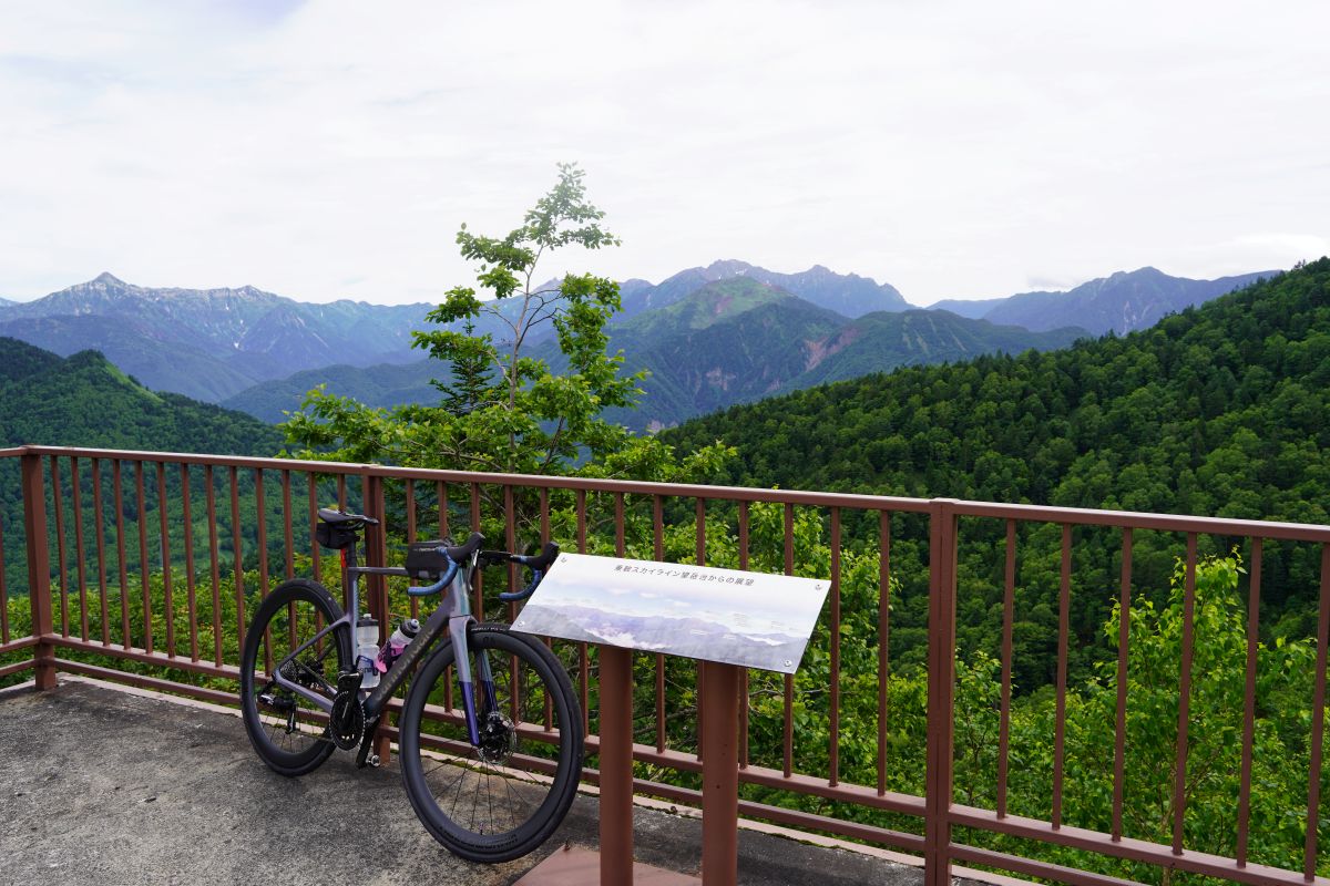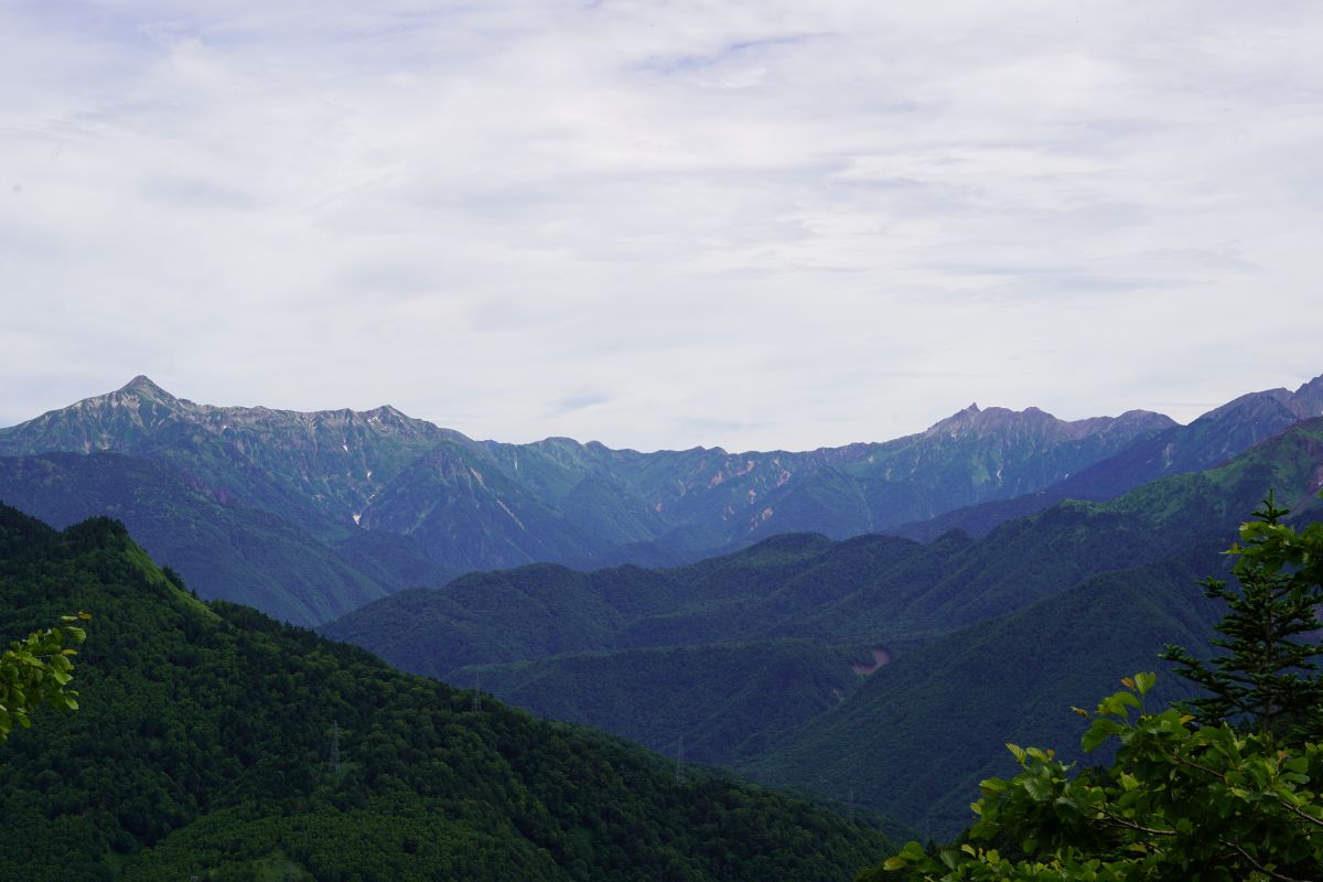 それもあって、割と早い段階から遠景が見えるようになってきます。標高2,000mの展望台。2,000mだとエコーラインはまだ樹林帯に囲まれていました。これは穂高連峰か?