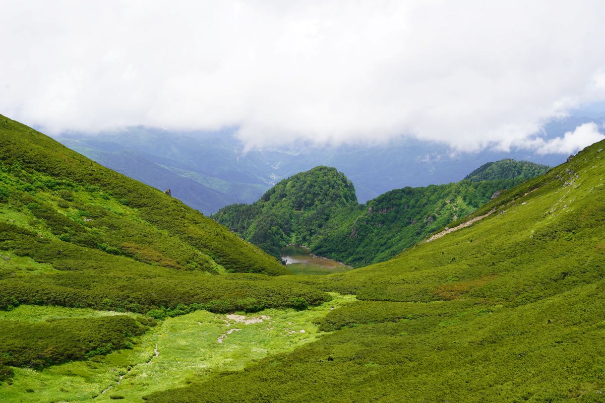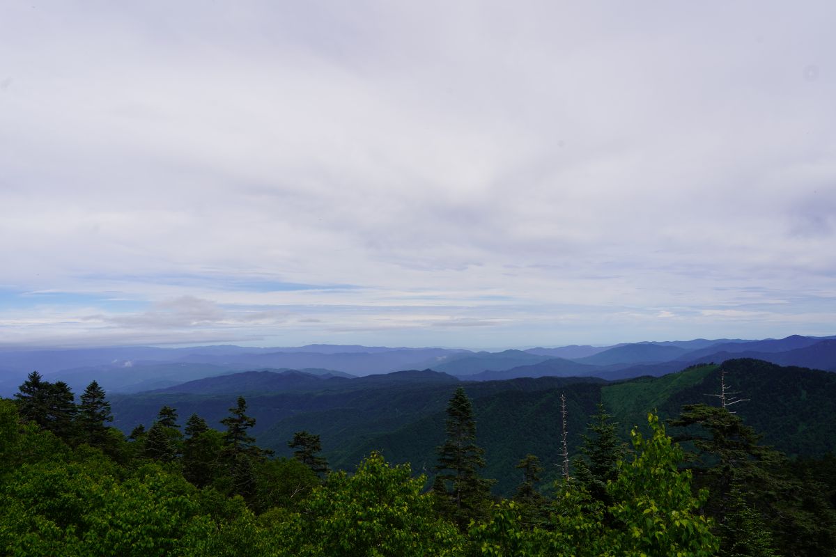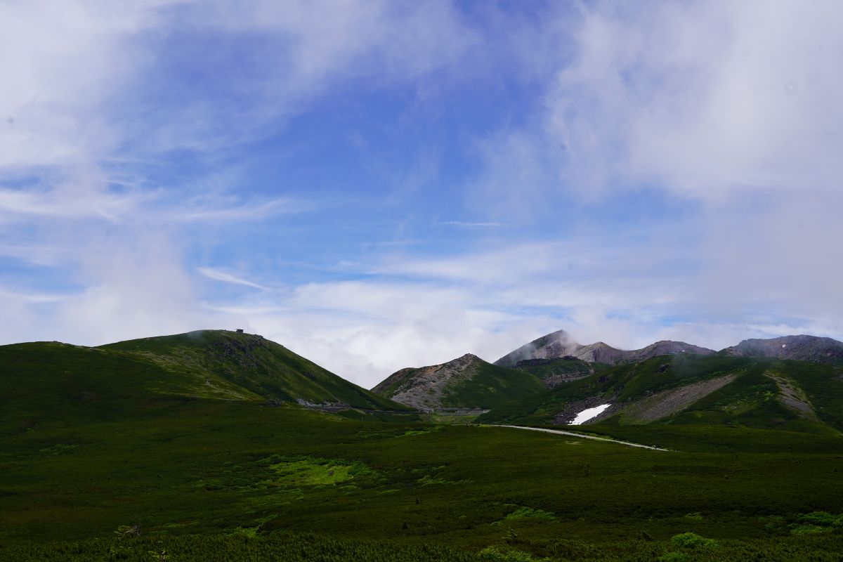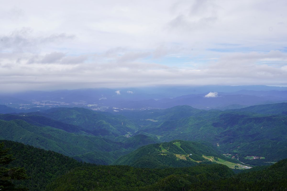 いやー、これが見たかったので登ってきて良かった。正直、エコーラインより斜度きついし、森の中を抜けるような道が好きなので、けっこう大変だったという思いは強いんだけど、ガスはかからなかったし、かといって薄曇りで日差し強くなかったのも幸い。来た甲斐はありました。