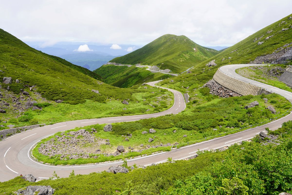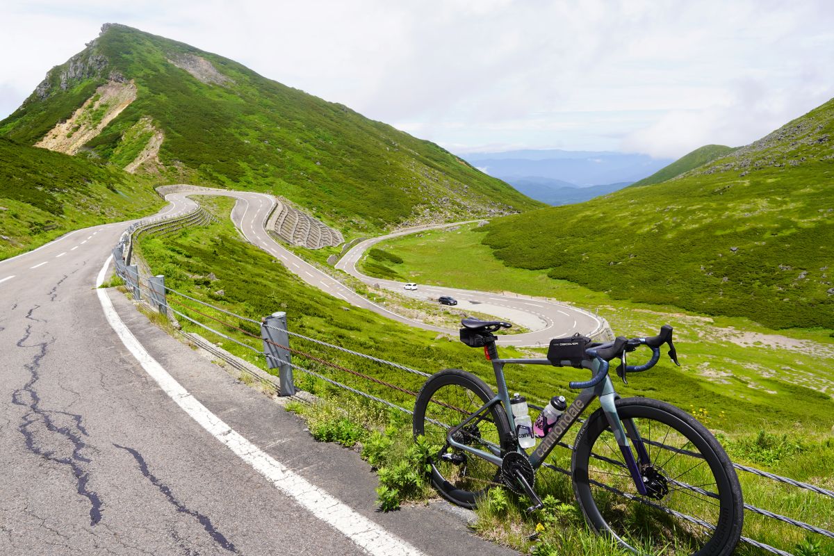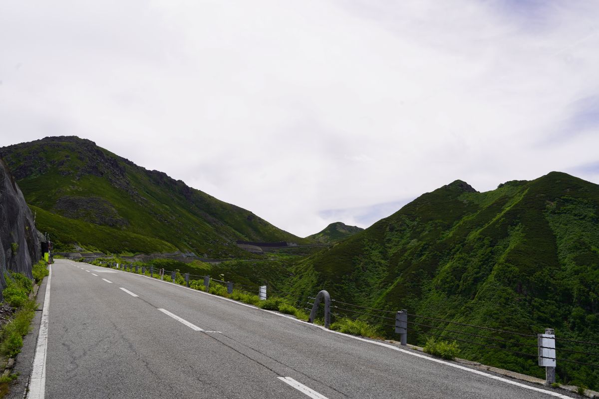 標高2,400mを越えると森林限界。そしてコーナーを曲がると……おお、これがSNSとかでよく見る場所じゃないのかな?まー、あそこのつづら折れまでまだ100mくらい登るんだけどね、調べたから知ってる。