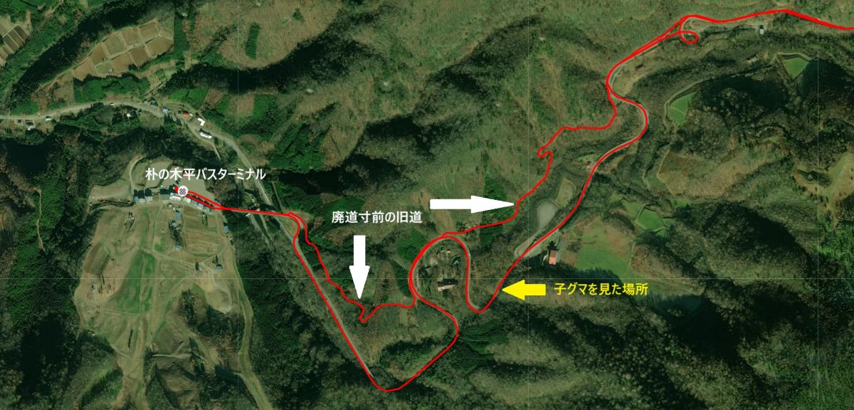 これ、旧道ワーイって楽しんでいたあたりなんですけど。声出して走ってなかったら、ライド中にエンカウントしてたかも。子グマかわいかったけど、間違いなく近くに母グマいるはずだし。