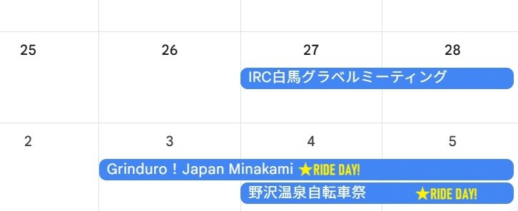 ……ここで気になるのがGrinduro!と野沢は日程が被っている……ように見えて、Grinduro!のライドは10月4日で、野沢は10月5日、実は被っていない!
