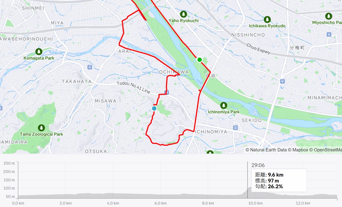 府中多摩川店周辺で坂というと、対岸の多摩市や稲城市、日野市になるわけですが、有名なのは川崎街道の連光寺坂、聖蹟桜ヶ丘のいろは坂などがあります。連光寺坂を淡々と登る感じも試してみたいところではありますが、時間的に断念、