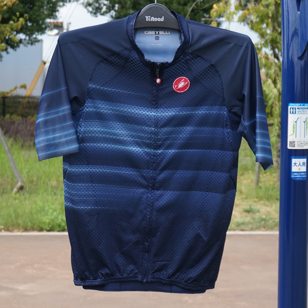 カステリの代表的な軽量ジャージで、ヒルクライムする方の味方的なイメージですが、昨今の酷暑を考えるとぜひラインナップに入れておきたいジャージです。なんといっても通気性が良いので。