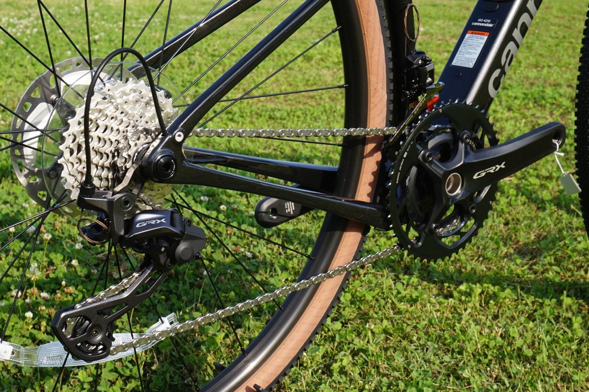 コンポーネントはシマノGRX RX820シリーズで、2×12速の機械式変速です。わたくしは日本の急峻な環境や長距離の走破性を考えると、フロントシングルよりもフロントダブルのほうが使いやすいと考えています。ギアはギアはフロント48×31、リア11-34Tで、4.36-0.91のギア比をカバーします。