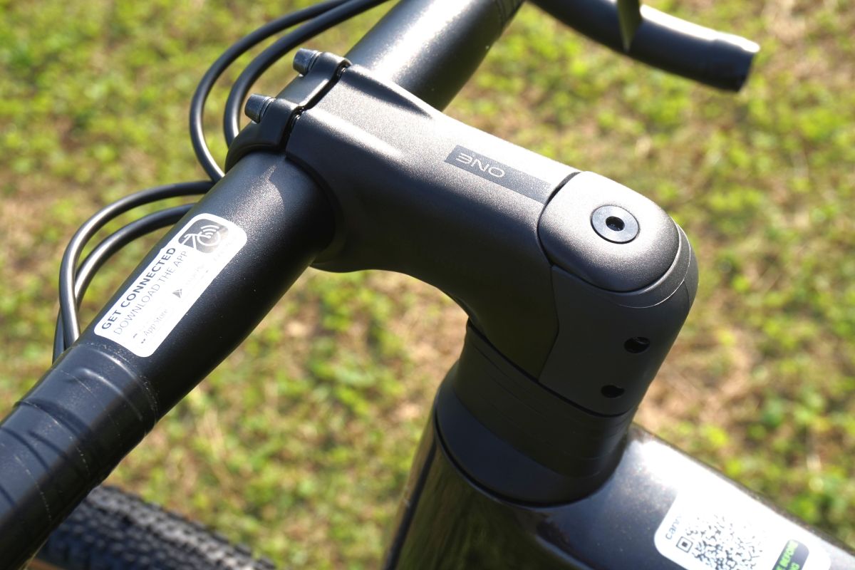 ステムからフレームにかけてはブレーキ&シフトケーブルは内装。ステムは第4世代SUPERSIX EVOから採用されているキャノンデールのCONCEAL C1ステムです。ハンドル側も内装対応であればフル内装化もできます。フル内装になると、ハンドル周りのバッグ取付もすっきりできますね。