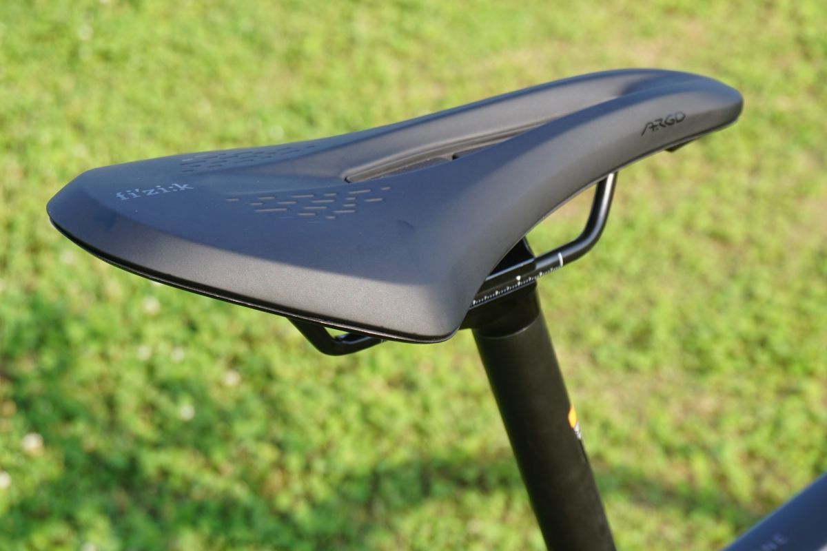 サドルはお好みもありますが、fi’zi:kのTERRA ARGO X7を採用。幅広でクッションもあるので、荒れたグラベルでも安定感があります。