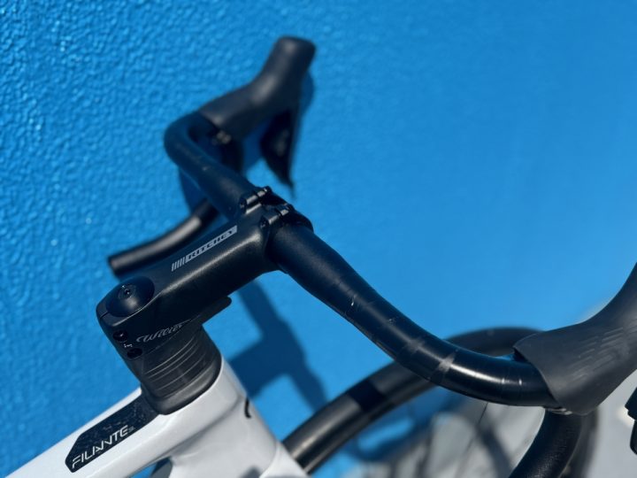 ステム一体型ではないので汎用のハンドルに変更も可能です。ワイヤー類はステムの下から内装になるのでなにもないみたいにスッキリです。