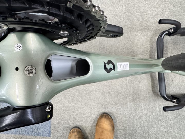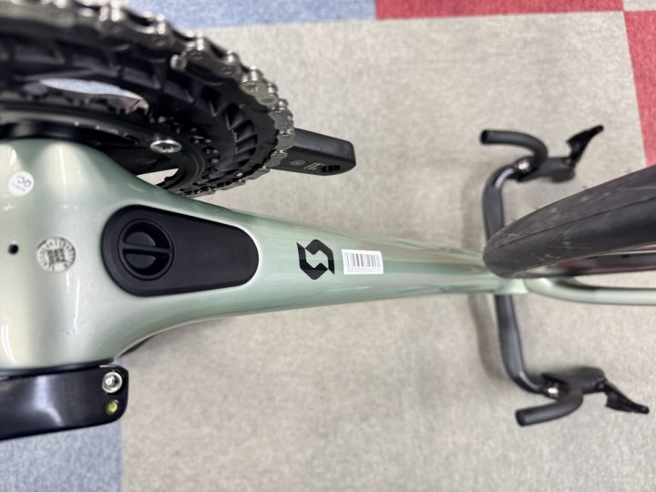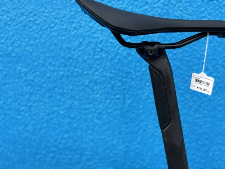 シートポスト(カーボン製)をよく見ると、やぐらのすぐ下あたり、取り外し可能になっていそうな部分がありますが、これエラストマーです。2026モデルのADDICTは更に乗り心地を追求しています!