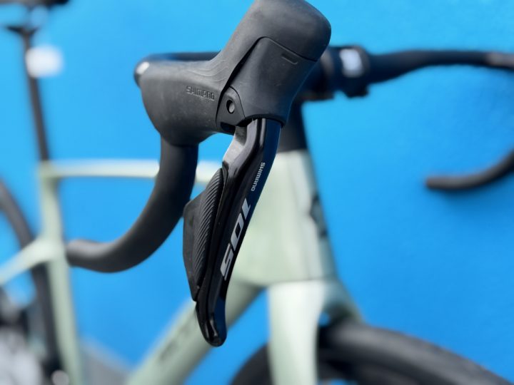 ハンドルの形状もちょっと変わりました。人間工学に基づき、あらぬ曲線があったりします。それがそこはかとなく美しい。ワイヤー類はすべてフル内装なのでなにもないみたいにスッキリです。