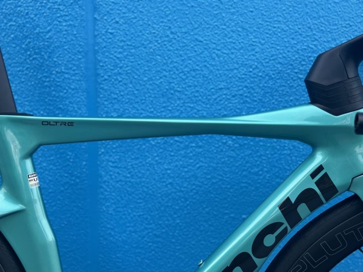 シートチューブなんてリアタイヤともうギリギリです。剛性のバランスも考えてるのでしょうが、形カッコよ! なによりシートステーへの流れが美しいです。