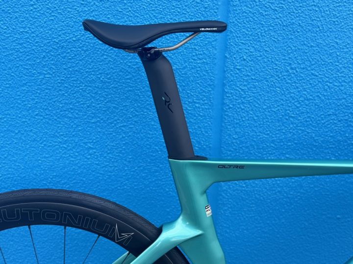 サドルもホイールもVELOMANNというBIANCHIのオリジナルブランド! 上質でだいぶ良さそげです。ちなみにステムもシートポストもVELOMANNです。