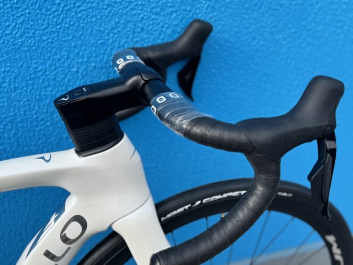 ステムも変わりました。フル内装ではなくなり、下を沿わせる形になりました。ステム交換も10mmぐらいの違いなら難なくできちゃうかもしれませんね。